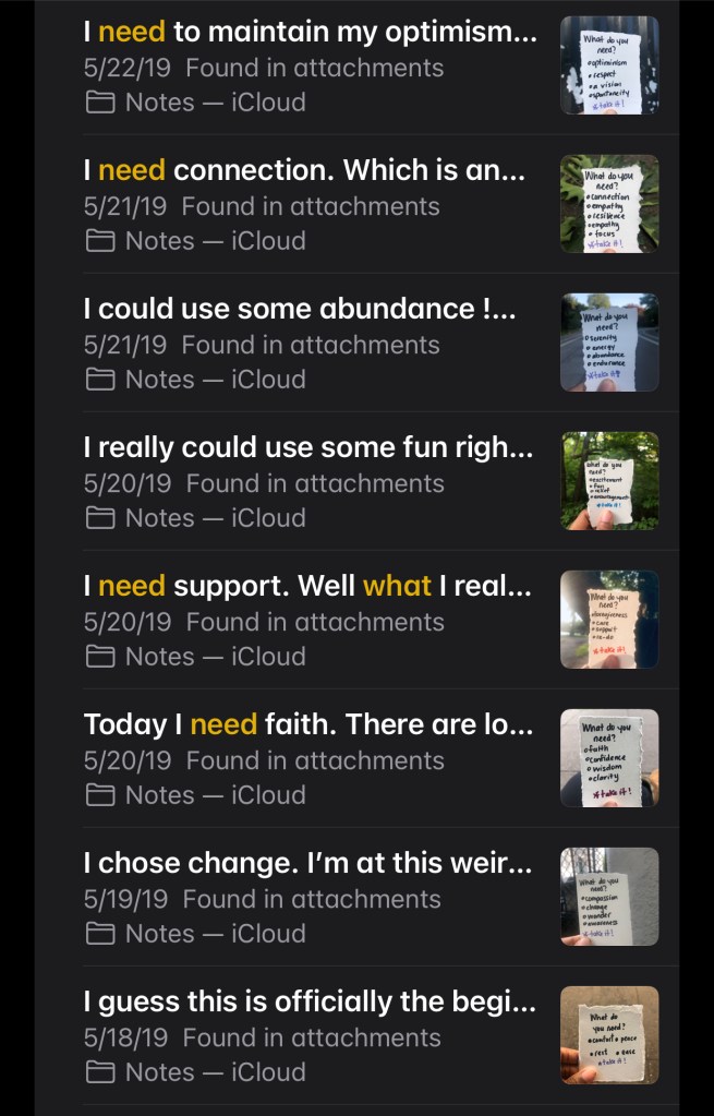 One day, I was in my minivan with my boyfriend. The seats were folded down in the back, and we were just relaxing. I had some beautiful crafting paper with me and began tearing it into small squares. I felt led to write words on them. Words that embodied the things I needed.